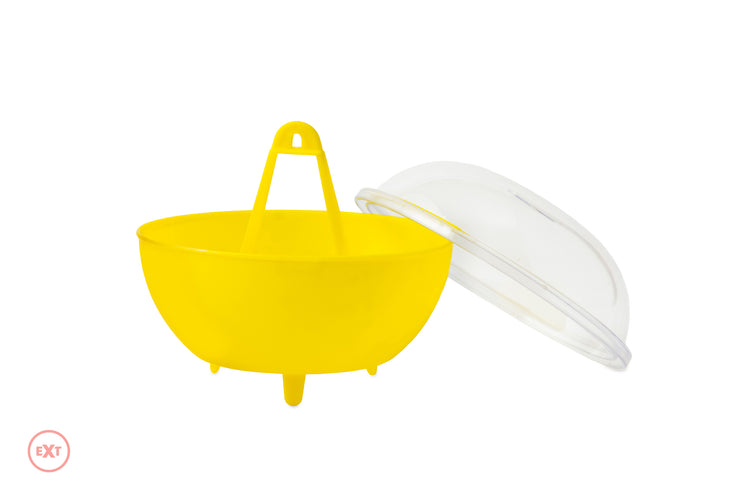 The trap has an inverted funnel entrance in the yellow polyethilene base and a highly transparent
